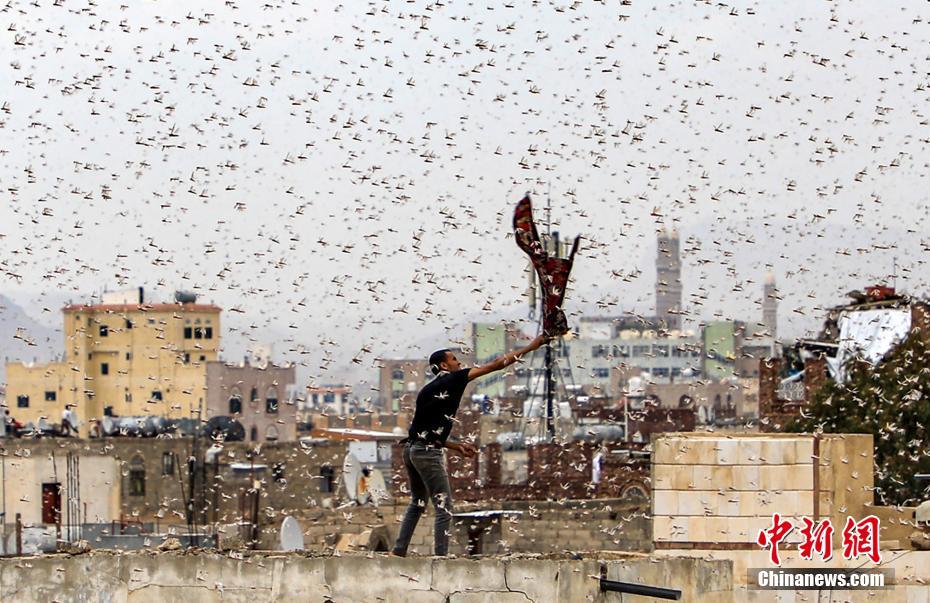 也门出现“蝗灾” 蝗虫漫天飞舞触目惊心