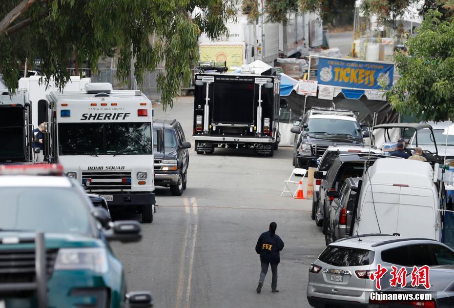 当地时间7月29日,美国加利福尼亚州吉尔罗伊警方透露,28日傍晚发生的吉尔罗伊大蒜节枪击案的枪手为19岁男子桑蒂诺·威廉·莱根。包括枪手在内,枪击事件共造成4人死亡,12人受伤。图为事发现场被警方封锁。图为联邦调查局工作人员在事发现场工作。中新社记者 刘关关 摄