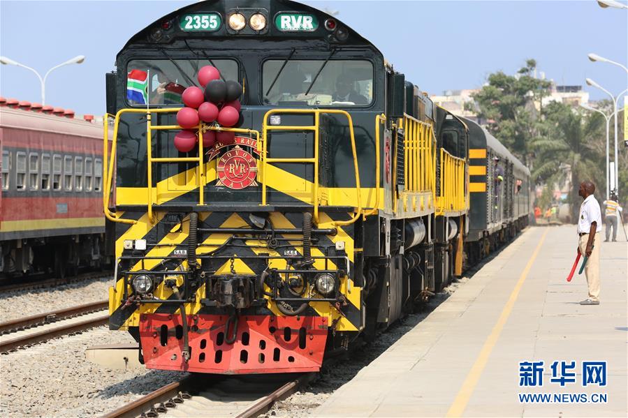 7月30日,在安哥拉洛比托,“非洲之傲”豪华旅游列车驶入中铁二十局承建的本格拉铁路洛比托火车站。新华社发(柳志摄)