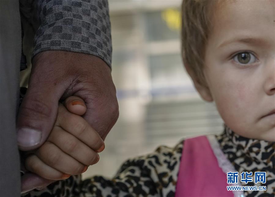 7月31日,在乌鲁木齐地窝堡国际机场,一位等待治疗的阿富汗先心病患儿紧紧抓住父亲的手。 当日,来自阿富汗的24名先心病患儿乘飞机抵达新疆,并已全部入住新疆维吾尔自治区人民医院。在接下来的一段时间里,由中国红十字会牵头组建的专家组,将根据每名患儿的身体状况制定手术方案,并逐一开展先心病治疗手术。 这是“天使之旅——‘一带一路’大病患儿人道救助计划”阿富汗二期行动启动后,首批到中国接受救治的孩子。根据计划,二期行动将分批次救助150名阿富汗患儿,他们将分别在新疆维吾尔自治区人民医院及其他医院接受免费救治。 新华社记者 赵戈 摄
