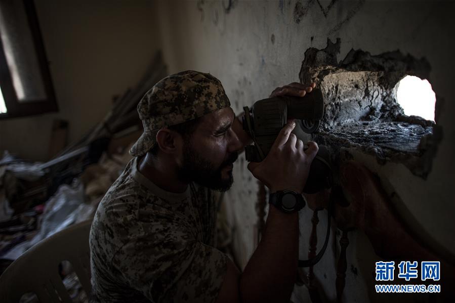 7月31日,在利比亚的黎波里,利比亚民族团结政府武装人员与利比亚“国民军”武装(不在画面中)交战。 新华社发(阿姆鲁摄)