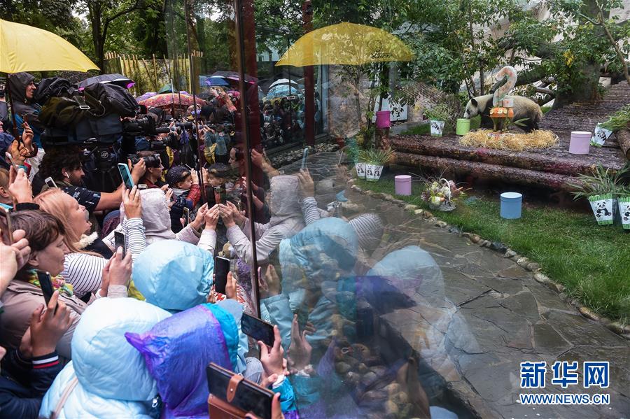 当天上午,庆祝现场,身着红色服装的演员们敲击着中国鼓,一阵阵鼓声配合着舞龙的节奏,气氛喜庆而热烈。随后,俄罗斯小朋友们在熊猫馆舍前为两只大熊猫唱响生日歌,他们甚至还专门学习了“祝你生日快乐”的中文歌曲。