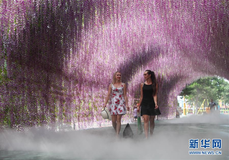 7月31日,列娜(左)结束表演后与同伴返回宿舍。 新华社记者 龙雷 摄