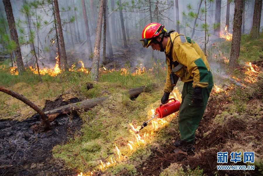 8月1日,在俄罗斯克拉斯诺亚尔斯克,消防人员在火场灭火。 连日来,俄罗斯西伯利亚及远东地区发生多起森林火灾。 新华社/欧新