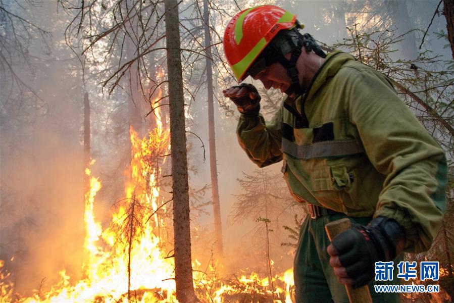 8月1日,在俄罗斯克拉斯诺亚尔斯克,消防人员在火场灭火。 连日来,俄罗斯西伯利亚及远东地区发生多起森林火灾。 新华社/欧新