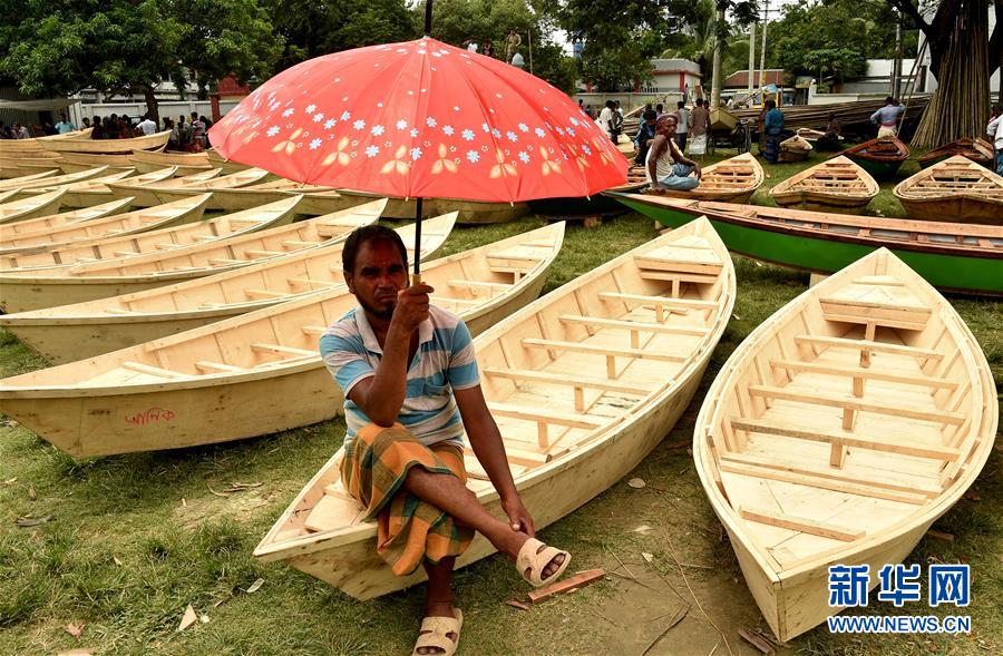 7月31日,在孟加拉国首都达卡西北60多公里的马尼格甘杰,商贩在市场上销售船只。新华社发