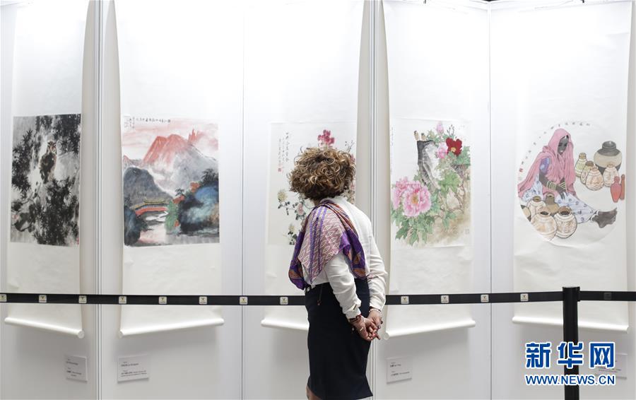 8月1日,一名墨西哥参观者在墨西哥首都墨西哥城举办的“庆祝北京·墨西哥城缔结友好城市十周年——中国艺术展”上欣赏画作。 “庆祝北京·墨西哥城缔结友好城市十周年——中国艺术展”8月1日在墨西哥首都墨西哥城举办,上百名来宾和观众现场领略了中国艺术和文化的魅力。 新华社发(弗朗西斯科·卡涅多摄)