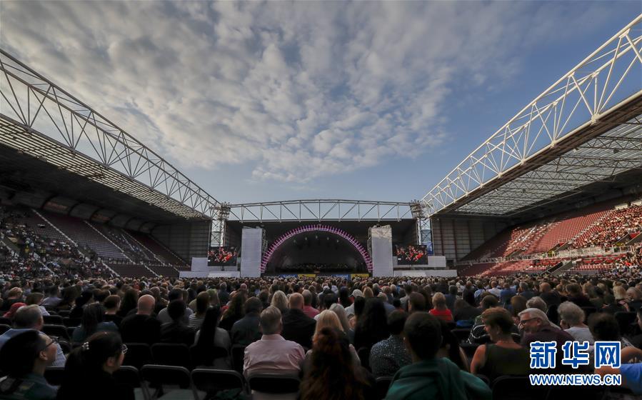 8月2日,在英国苏格兰爱丁堡,人们观看爱丁堡国际艺术节开幕演出。新华社记者 韩岩 摄