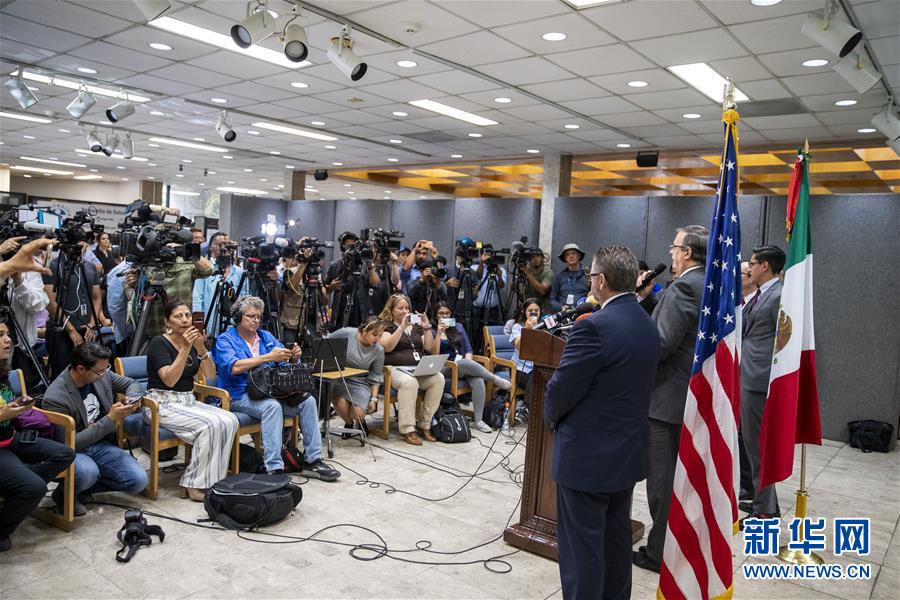 8月5日,在美国得克萨斯州埃尔帕索的墨西哥驻埃尔帕索领事馆,墨西哥外长埃布拉德(右中)出席记者会。 埃布拉德表示墨西哥方面将介入枪击事件的调查,并呼吁美国对种族主义和白人至上主义倾向给予关注。 新华社记者 王迎 摄