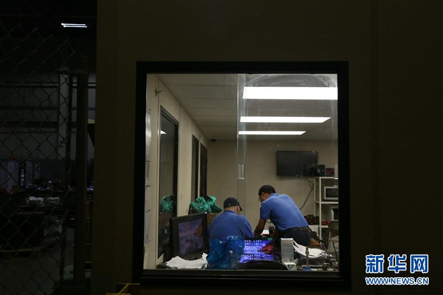 7月24日,在美国俄亥俄州代顿地区莫瑞恩市的福耀玻璃美国有限公司,一名中国员工和一名美国员工一起工作。 2014年,中国福耀集团投资收购了通用汽车公司在美国俄亥俄州代顿地区莫瑞恩市的一家废弃装配厂,并在此基础上进行重建。如今,福耀在代顿的投资额已达6亿多美元,为当地创造了2400个直接就业机会和3000多个间接就业机会。 新华社记者 张凤国 摄