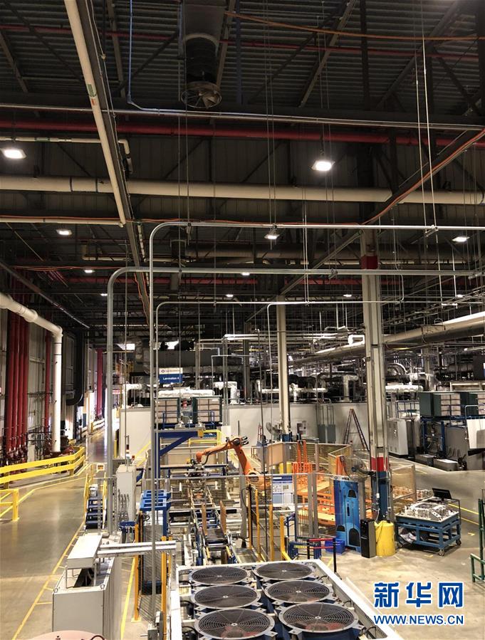这是7月27日在美国俄亥俄州代顿地区莫瑞恩市拍摄的福耀玻璃美国有限公司里的玻璃生产线。 2014年,中国福耀集团投资收购了通用汽车公司在美国俄亥俄州代顿地区莫瑞恩市的一家废弃装配厂,并在此基础上进行重建。如今,福耀在代顿的投资额已达6亿多美元,为当地创造了2400个直接就业机会和3000多个间接就业机会。 新华社发(刘道川摄)