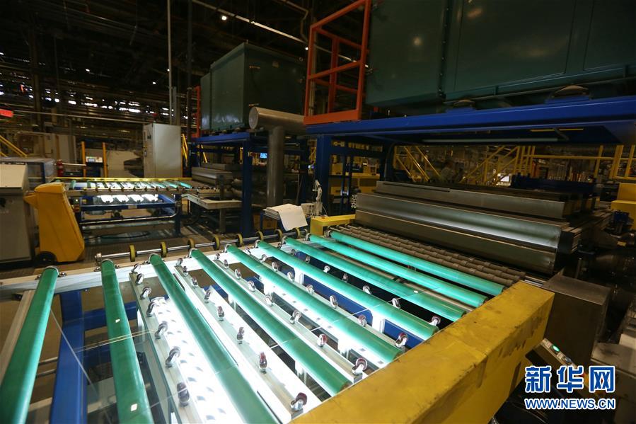这是7月24日在美国俄亥俄州代顿地区莫瑞恩市拍摄的福耀玻璃美国有限公司里的玻璃生产线。 2014年,中国福耀集团投资收购了通用汽车公司在美国俄亥俄州代顿地区莫瑞恩市的一家废弃装配厂,并在此基础上进行重建。如今,福耀在代顿的投资额已达6亿多美元,为当地创造了2400个直接就业机会和3000多个间接就业机会。 新华社记者 张凤国 摄