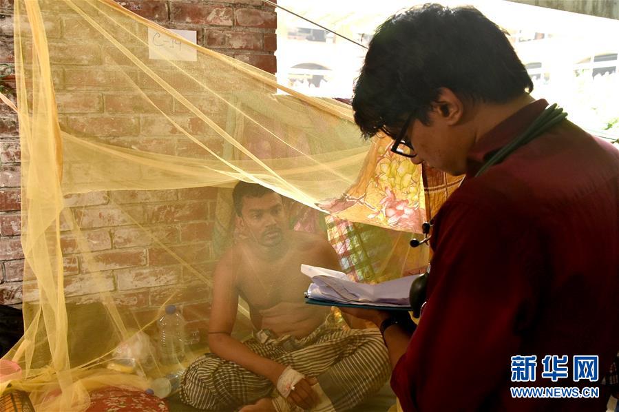 8月6日,孟加拉国首都达卡的一家医院人满为患,许多患者不得不在走廊上接受治疗。新华社发(萨利姆·礼萨摄)