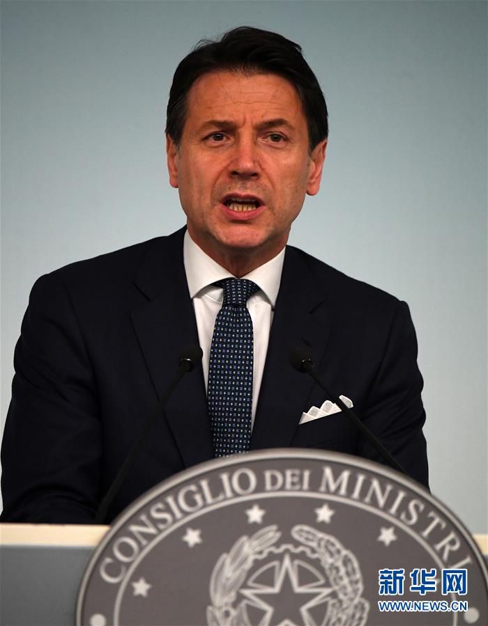 8月8日,意大利总理孔特在罗马举行的媒体发布会上讲话。新华社发(阿尔贝托·林格里亚摄)