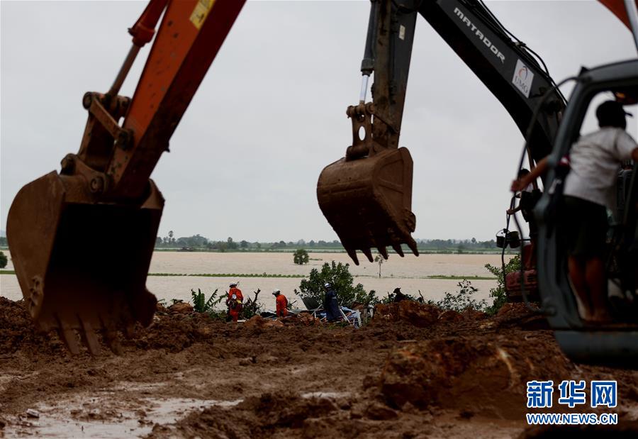 8月11日,在缅甸南部孟邦,救援人员清理受灾现场。新华社发(吴昂摄)
