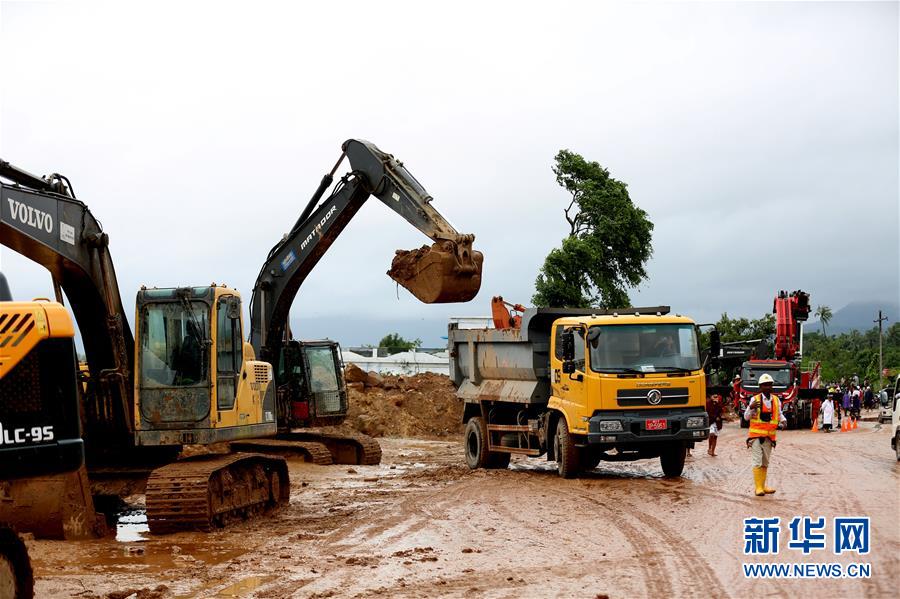 8月11日,在缅甸南部孟邦,工作人员清理受灾现场。新华社发(吴昂摄)