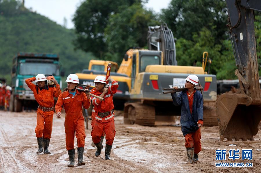 8月11日,在缅甸南部孟邦,救援人员带着工具前往受灾现场。新华社发(吴昂摄)