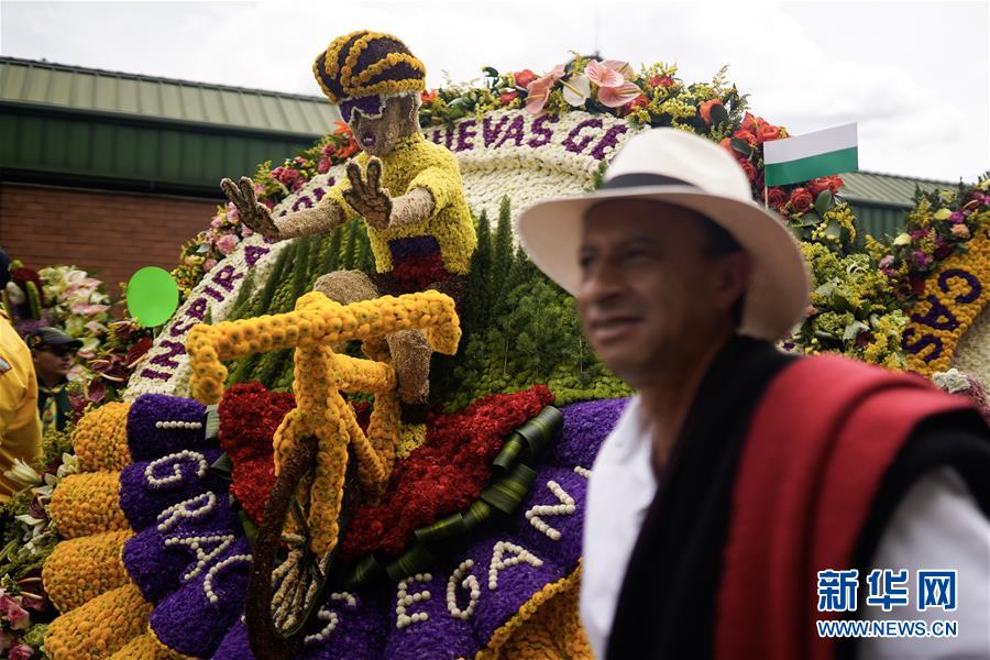 8月11日,在哥伦比亚第二大城市麦德林鲜花节现场,人们参加花盘游行。 为期10天的第62届麦德林鲜花节11日在麦德林落幕。当天举行的花盘游行是鲜花节最重要的活动,吸引了上千名花农和表演者的参与。 新华社发(约翰·帕斯摄)