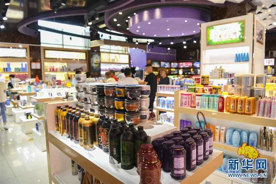 游客在中哈霍尔果斯国际边境合作中心的一家免税店内购物(8月11日摄)。 眼下正值旅游旺季,中哈霍尔果斯国际边境合作中心内随处可见中外游客,来往商贩、车辆络绎不绝。中亚的糖果、面粉、饮料,中国的纺织品、小商品等琳琅满目,吸引着各地的客商。据中哈霍尔果斯国际边境合作中心管理办公室数据显示,今年1-7月合作中心入出园人员总数达334.77万人次,同比增长7.28%。 中哈霍尔果斯国际边境合作中心是全球首个跨境自由贸易区,2012年封关运营后,中心内游客人数呈快速增长态势。 新华社记者 胡虎虎 摄