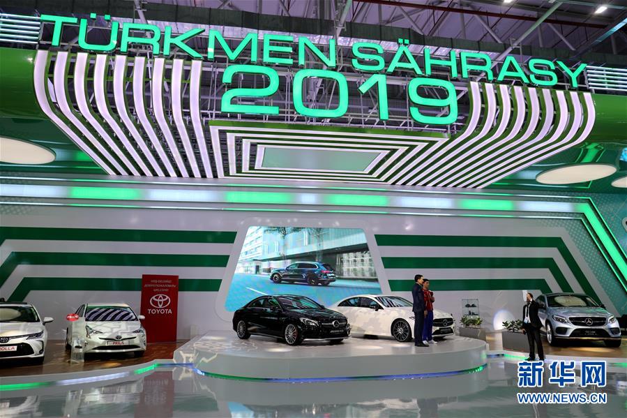 这是8月11日在土库曼斯坦土库曼巴希拍摄的里海创新技术展和国际汽车展现场。