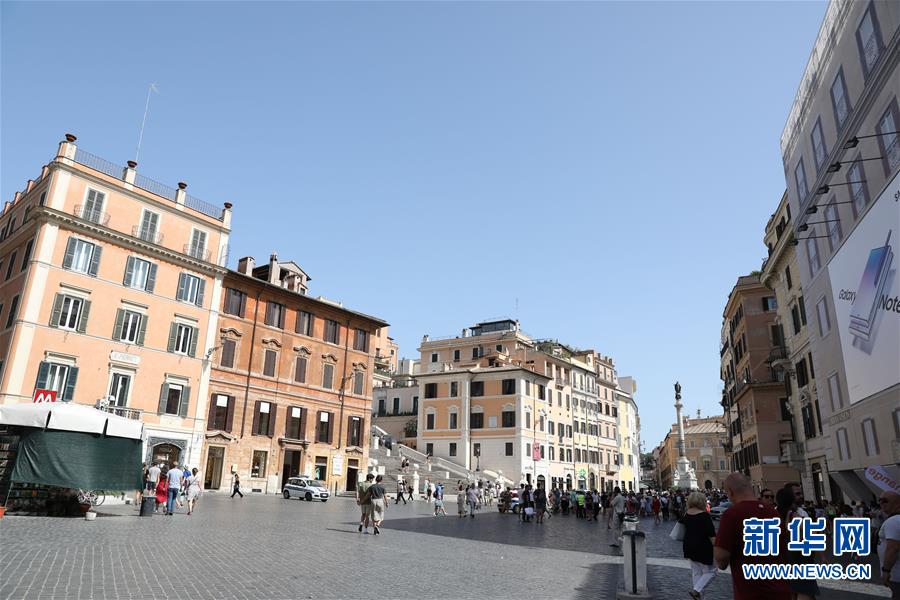 8月12日,在意大利首都罗马,人们走在建筑物的阴影下躲避阳光。 当日,罗马最高气温达到37摄氏度,体感温度更是一度突破40摄氏度。 新华社记者程婷婷摄