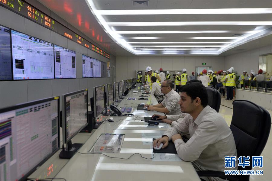8月6日,在巴基斯坦东部旁遮普省萨希瓦尔,员工在萨希瓦尔燃煤电站控制室里工作。 新华社发(艾哈迈德·卡迈勒摄)