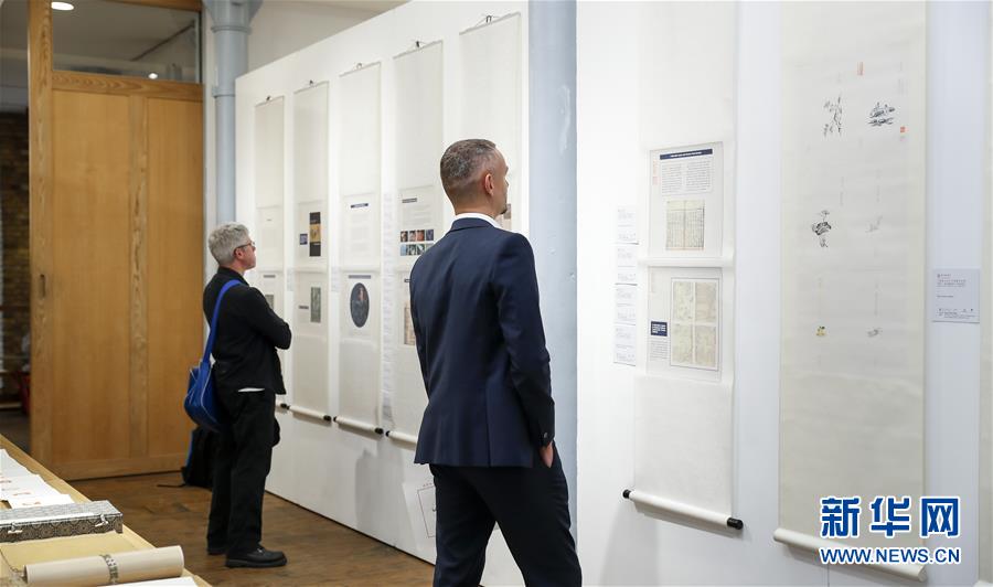 8月12日,在英国伦敦,嘉宾参观木版水印艺术作品展。 新华社记者韩岩摄