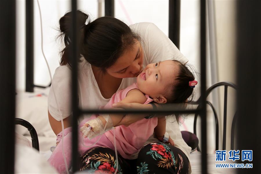 8月13日,在菲律宾甲米地省一处登革热应急医疗站,一名母亲照顾自己患病的孩子。 新华社发(鲁埃勒·乌马利摄)