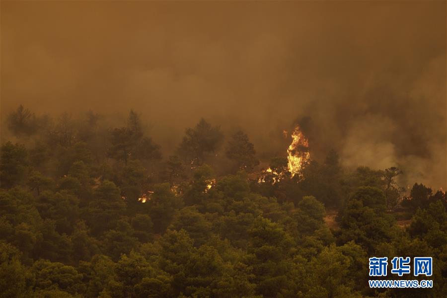 8月13日,大火在希腊中部埃维亚岛的马克里马利村附近山林中蔓延。 埃维亚岛13日凌晨发生森林火灾,火势迅速蔓延。目前已有数百名居民被疏散,当地已宣布进入紧急状态。 新华社发(尼克·帕莱奥洛戈斯摄)