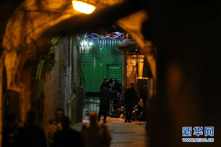 8月15日,在耶路撒冷老城,以色列安全人员在袭击现场工作。新华社发(穆阿迈尔·阿瓦德摄)