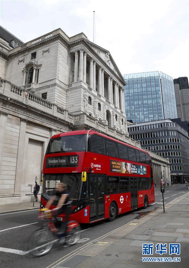 8月16日,在英国伦敦,一辆巴士从英格兰银行前经过。新华社记者 韩岩 摄