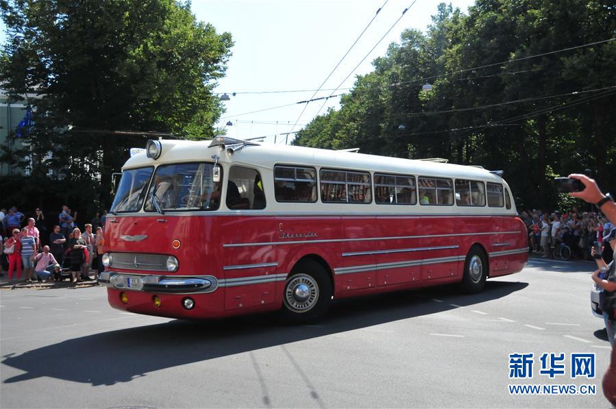 8月17日,在拉脱维亚首都里加,一辆老式公交车参加老爷车巡游。 当日,拉脱维亚首都里加举行一年一度的老爷车巡游。该活动由拉脱维亚古董汽车俱乐部和里加汽车博物馆主办,吸引100余辆老爷车参加。 新华社发(亚尼斯摄)