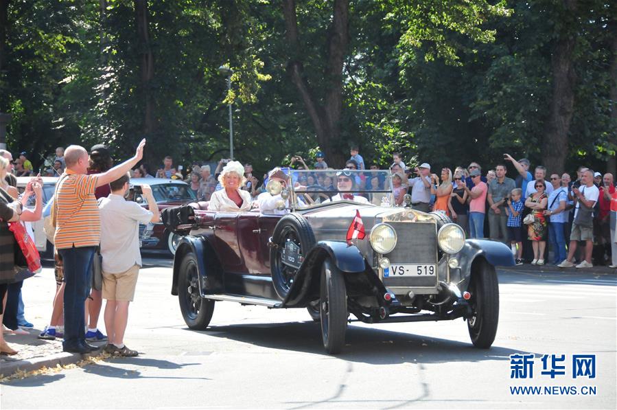 8月17日,在拉脱维亚首都里加,人们观看老爷车巡游。 当日,拉脱维亚首都里加举行一年一度的老爷车巡游。该活动由拉脱维亚古董汽车俱乐部和里加汽车博物馆主办,吸引100余辆老爷车参加。 新华社发(亚尼斯摄)
