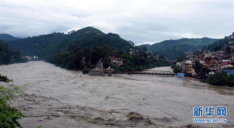 8月18日,在印度北部喜马偕尔邦,暴雨引发河水上涨。 据印度媒体18日报道,印度北部喜马偕尔邦当天持续暴雨引发洪水、山体滑坡和泥石流等自然灾害,已造成至少18人死亡。 新华社发