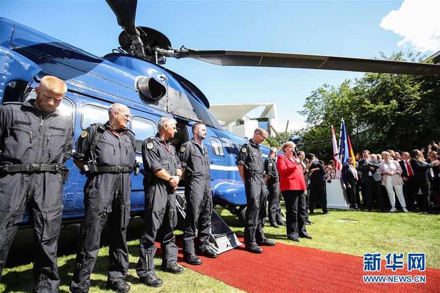 8月18日,在德国首都柏林,德国总理默克尔在开放日活动上讲话。新华社记者 单宇琦 摄
