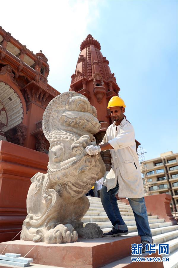 8月18日,在埃及首都开罗,一名工人在巴伦·昂潘宫进行修复工作。 埃及文物部长哈立德·阿纳尼18日视察正在修复中的巴伦·昂潘宫时说,该建筑将被改造成历史博物馆,以展示首都开罗赫利奥波利斯区各个时期的文化。巴伦·昂潘宫也被称为“印度宫”,位于开罗东北部的赫利奥波利斯区,是当地一个著名建筑,于1907年至1911年间由比利时企业家巴伦·爱德华·昂潘建造,带有明显的印度风格。 新华社发(艾哈迈德·戈马摄)
