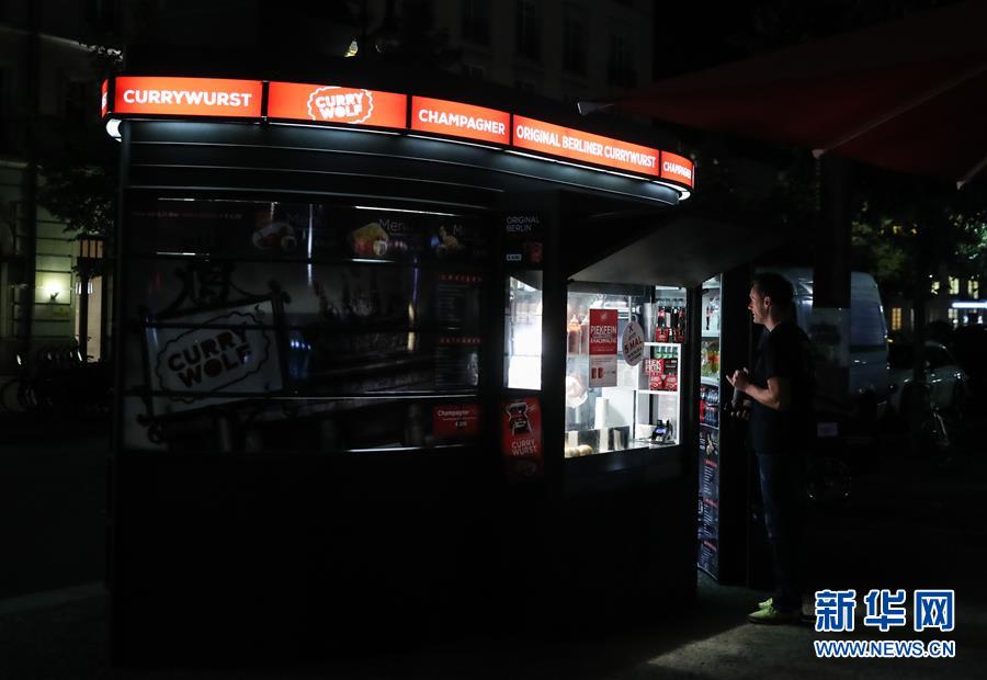 8月19日,在德国首都柏林,一名男子光顾菩提树下大街旁的一家小吃店。新华社记者 单宇琦 摄