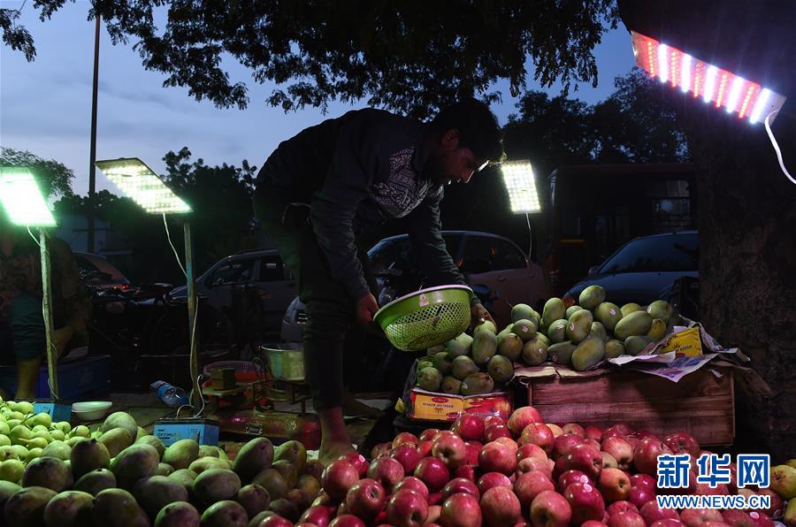 8月18日晚,在印度首都新德里,一名男子在“星期天市场”整理货摊。 新德里有多处类似“星期天市场”的夜市场,大多在周五至周日的晚间营业。这些夜市场多设置在宽敞的道路两旁,方便人们购物的同时也便于管理。相较于传统商场,这些夜市场不仅商品种类繁多,而且价格便宜,吸引了许多民众前来。 新华社记者 张迺杰 摄