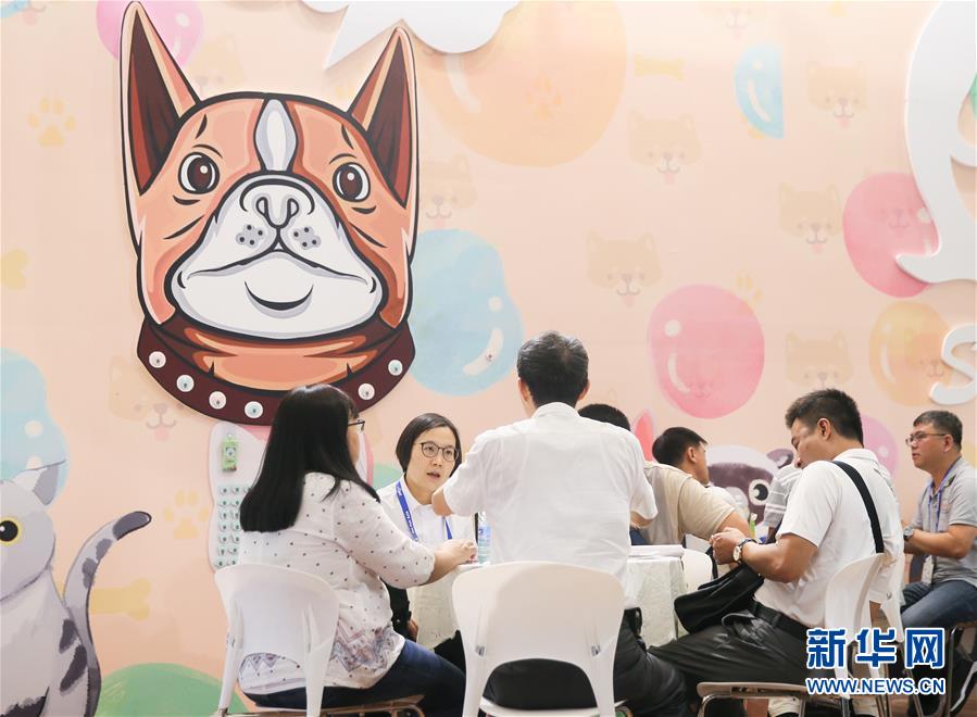 8月21日,顾客在展区内与展商洽谈业务。新华社记者丁汀摄