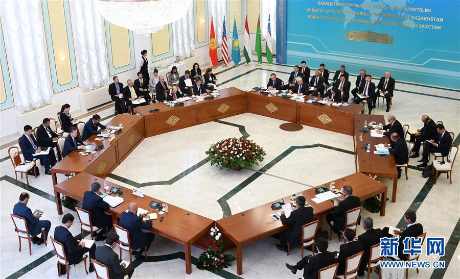 8月21日,在哈萨克斯坦首都努尔苏丹,中亚五国与美国举行“C5+1”机制会谈。 新华社发(哈萨克斯坦外交部供图)