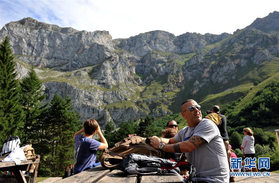 8月21日,游客在西班牙欧洲之峰国家公园内休息。 欧洲之峰位于西班牙北部,是西班牙认定的第一个国家公园。这里气候湿润,植被茂盛,层峦叠嶂,景色十分壮观。每年夏天,都有大量游客前来亲近大自然,享受山中的美景和清凉。 新华社记者 郭求达 摄