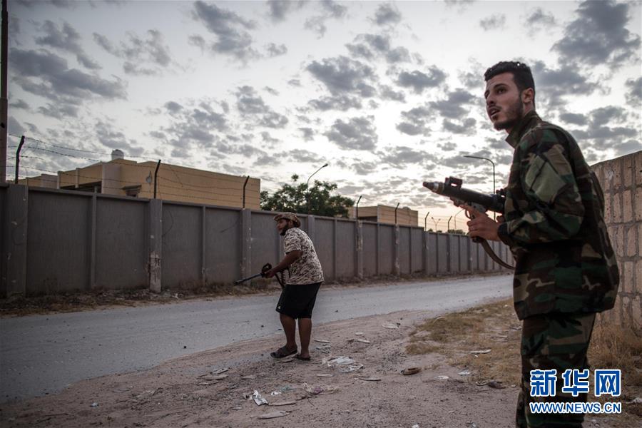 这是8月21日在利比亚首都的黎波里拍摄的利比亚民族团结政府武装人员。 2011年卡扎菲政权被推翻后,利比亚局势陷入动荡。目前,利比亚许多地区处于无政府状态,利比亚民族团结政府与国民代表大会两大势力割据对峙。 新华社发(阿姆鲁摄)