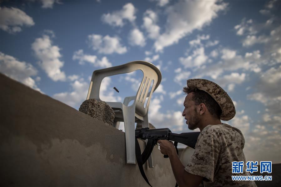 8月21日,在利比亚首都的黎波里,一名利比亚民族团结政府武装人员在射击。 2011年卡扎菲政权被推翻后,利比亚局势陷入动荡。目前,利比亚许多地区处于无政府状态,利比亚民族团结政府与国民代表大会两大势力割据对峙。 新华社发(阿姆鲁摄)