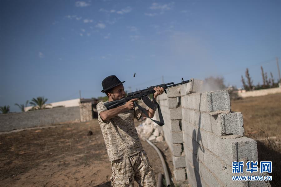 8月21日,在利比亚首都的黎波里,一名利比亚民族团结政府武装人员在射击。 2011年卡扎菲政权被推翻后,利比亚局势陷入动荡。目前,利比亚许多地区处于无政府状态,利比亚民族团结政府与国民代表大会两大势力割据对峙。 新华社发(阿姆鲁摄)