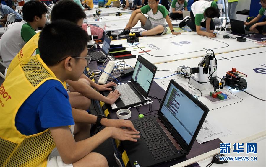 8月21日,参赛选手在比赛中。 世界机器人大赛冠军赛与北京2019世界机器人大会同期举行。世界机器人大赛被誉为机器人界的“奥运会”,今年共设BCI脑控机器人大赛、共融机器人挑战赛、机器人工业设计大赛、青少年机器人设计大赛四大类赛事。大赛已在全球举办了多场选拔赛,本次冠军赛有中国和来自俄罗斯、日本、韩国、美国、新加坡、墨西哥、菲律宾等10余个国家和地区的1000余支队伍参赛。 新华社记者李欣摄