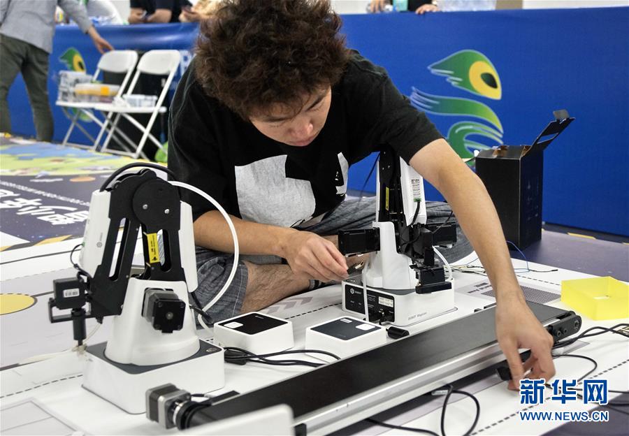 8月21日,来自日本的选手在做赛前准备。 世界机器人大赛冠军赛与北京2019世界机器人大会同期举行。世界机器人大赛被誉为机器人界的“奥运会”,今年共设BCI脑控机器人大赛、共融机器人挑战赛、机器人工业设计大赛、青少年机器人设计大赛四大类赛事。大赛已在全球举办了多场选拔赛,本次冠军赛有中国和来自俄罗斯、日本、韩国、美国、新加坡、墨西哥、菲律宾等10余个国家和地区的1000余支队伍参赛。 新华社记者李欣摄
