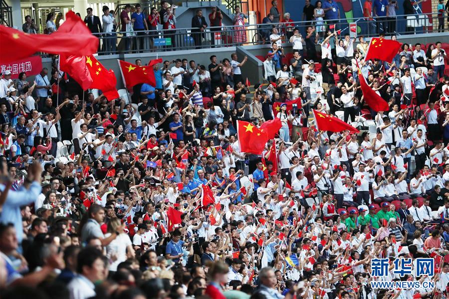 这是8月22日在俄罗斯喀山体育场第45届世界技能大赛开幕式上拍摄的中国观众。 第45届世界技能大赛22日在俄罗斯鞑靼斯坦共和国首府喀山开幕,中国代表团的63名参赛选手将参加全部项目的比赛,向世界展示“大国工匠”的风采。 本届世界技能大赛将持续至27日,来自世界技能组织69个成员国家和地区的1355名选手将在6大类56个项目上展开竞技。 新华社记者 鲁金博 摄