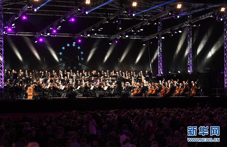 这是8月22日在德国法兰克福拍摄的欧洲中央银行主办的“欧洲文化日”系列活动开幕露天音乐会现场。 由欧洲中央银行主办的“欧洲文化日”系列活动22日在法兰克福拉开帷幕,超过万名当地民众聚集在美因河畔,欣赏开幕露天音乐会。音乐会上,法兰克福广播交响乐团演奏了贝多芬、李斯特、亨德尔等欧洲音乐家的经典作品。系列活动以庆祝欧元启用20周年为主题,将持续至10月。 新华社记者 逯阳 摄