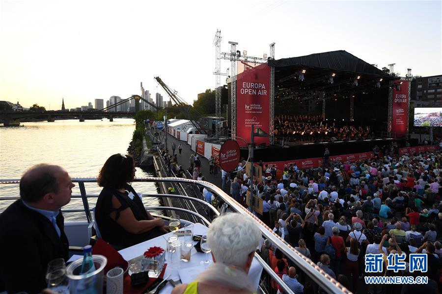 8月22日,在德国法兰克福,观众在欧洲中央银行主办的“欧洲文化日”系列活动开幕露天音乐会现场欣赏演出。 由欧洲中央银行主办的“欧洲文化日”系列活动22日在法兰克福拉开帷幕,超过万名当地民众聚集在美因河畔,欣赏开幕露天音乐会。音乐会上,法兰克福广播交响乐团演奏了贝多芬、李斯特、亨德尔等欧洲音乐家的经典作品。系列活动以庆祝欧元启用20周年为主题,将持续至10月。 新华社记者 逯阳 摄