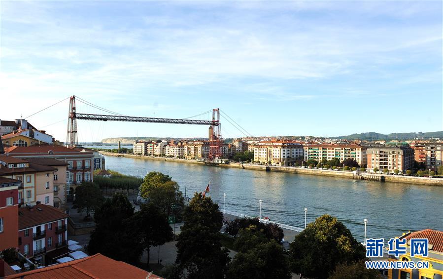 这是8月22日在西班牙比斯开省内维翁河畔拍摄的比斯开桥。新华社记者 郭求达 摄